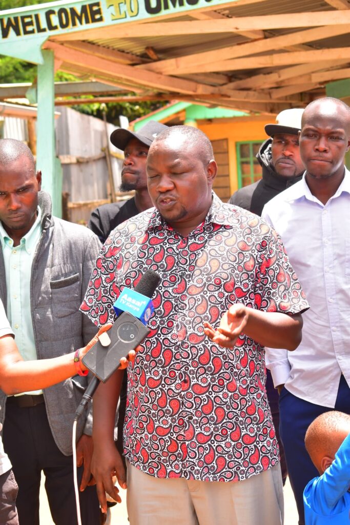 CPA Geoffrey Kurgat speak to the press after visiting Umoja Children’s Home in Bomet Cental. Kurgat said there was need by government to enhance protection of children. Photo/Kiplangat Kirui